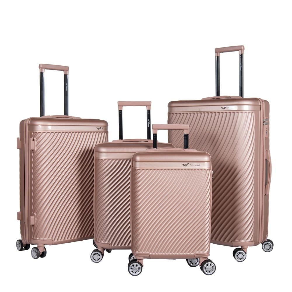 طقم شنط سفر 4 قطع من حقائب القنصل خامة ABS مقاومة للصدمات – بعجلات 360° ومقابض أمامية لراحة التنقل TD-04 لون ROSE GOLD