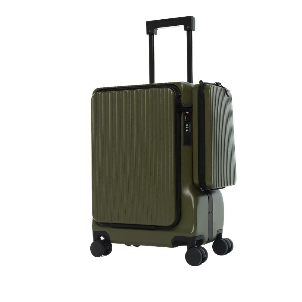 شنطة سفر مقاس 20 إنش بتصميم عملي واحترافي، تتميز بوجود شنطة جانبية كبيرة مدمجة توفر مساحة إضافية مثالية لحمل اللابتوب، الملفات، أو الأجهزة الصغيرة.