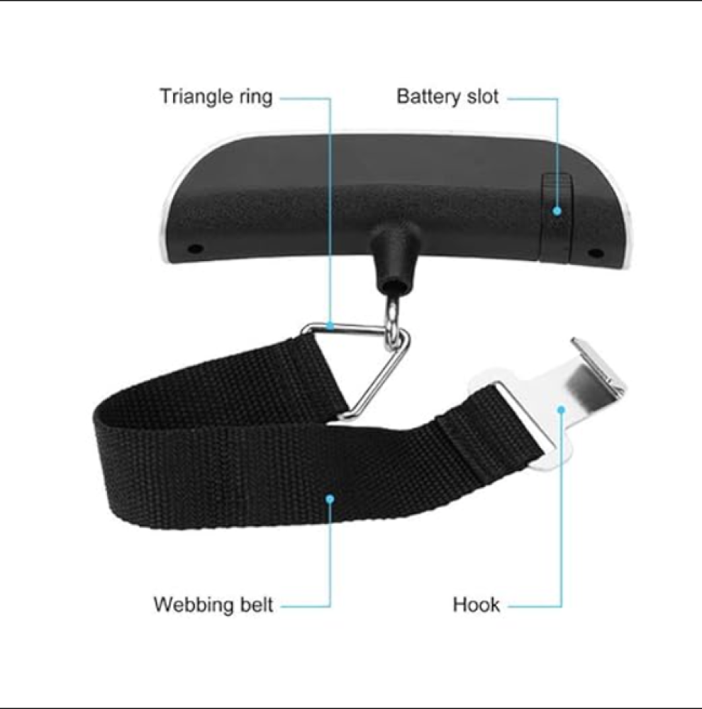 ميزان إلكتروني محمول باليد ذو شكل محدد بشكل مريح لقبضة آمنة وسهولة الوزن. يأتي الميزان مع حزام مرن مع وصلة معدنية آمنة لاستخدام يدوم لسنوات.