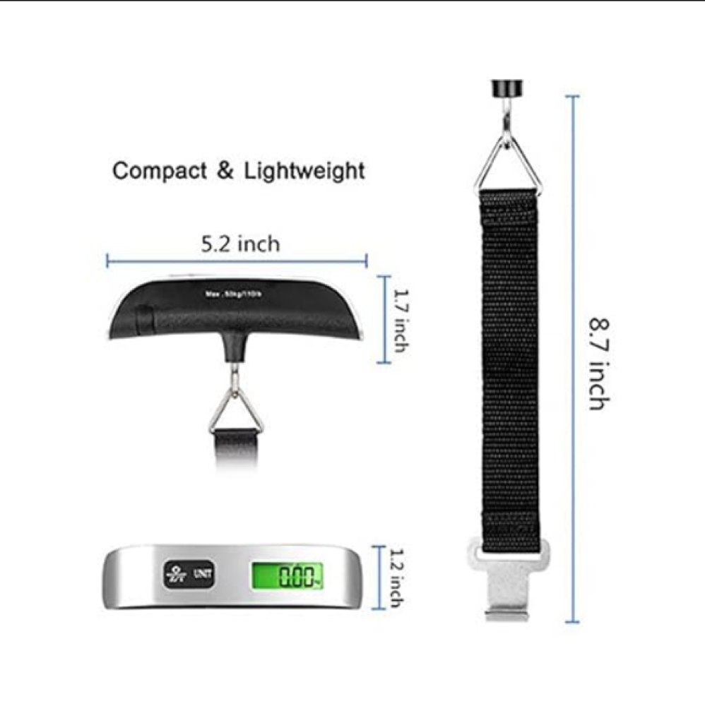 يتميز ميزان قياس وزن شنط الأمتعة الرقمي هذا بكونه محمولًا وعمليًا ومريحًا. استخدمه لقياس وزن شنط أمتعتك ثم وضعه في جيبك قبل الخروج مغامرتك القادمة.
